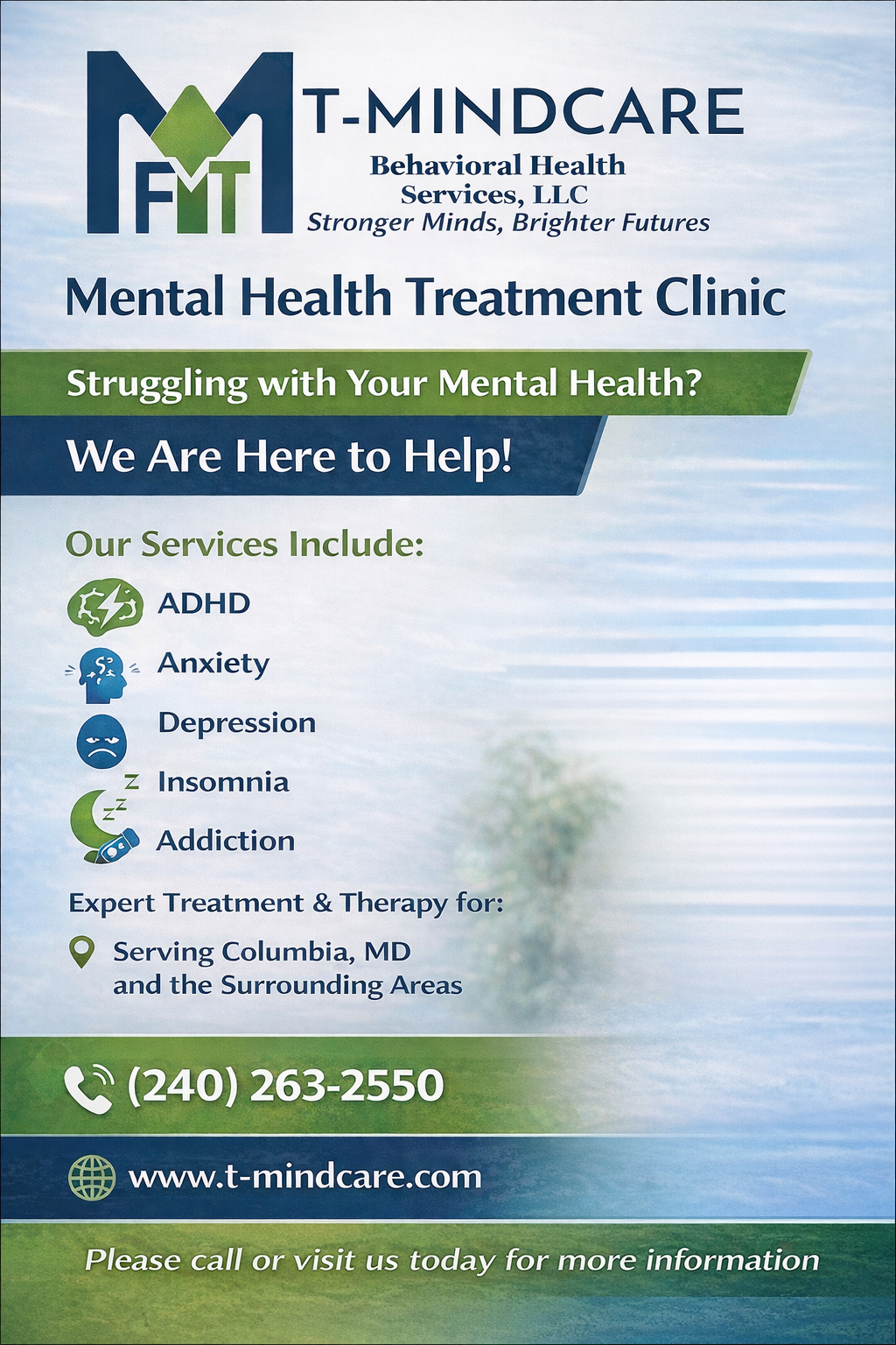 Professional mental health services create a safe space for healing, understanding, and growth. At T-Mindcare in Columbia, MD, we are committed to helping individuals find balance and stability through compassionate, evidence-based care. Our team of licensed professionals takes pride in offering personalized support to address a wide range of emotional and psychological needs. Whether you're navigating daily stress or facing a more complex mental health condition, we provide the tools and guidance you need to move forward with confidence. We specialize in comprehensive psychiatric evaluations to ensure every client receives accurate diagnoses and customized treatment plans. Understanding that every person's journey is unique, our approach focuses on creating solutions that fit each individual's specific circumstances. From schizophrenia treatment to bipolar disorder therapy, we are dedicated to improving mental wellness through effective interventions and ongoing support.
